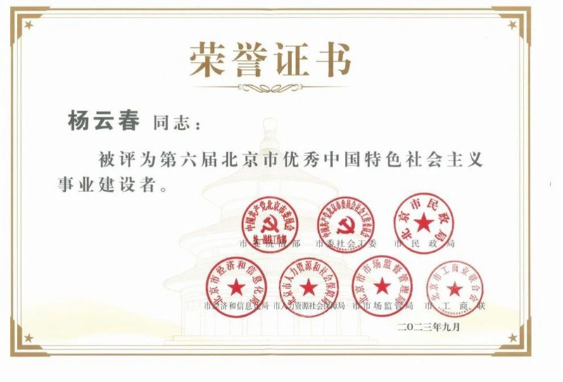 賽微電子董事長(zhǎng)楊云春榮獲“北京市優(yōu)秀中國(guó)特色社會(huì)主義事業(yè)建設(shè)者”稱號(hào)